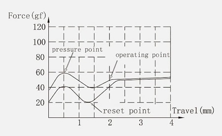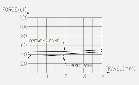 Red: 45±15 gf, 2,0 mm előút, 4,0 mm teljes út