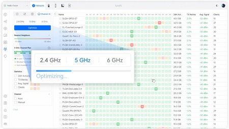 A Channel AI áll a verzió középpontjában; lehetővé teszi az adminok számára, hogy gyorsan felmérjék és javítsák WiFi csatornaterveiket. Azáltal, hogy vizualizálja minden hozzáférési pont (AP) környezetét és a szomszédos AP-kat, azonnali betekintést nyújt a szomszédos csatornák zavarásába és alkalmaz egy algoritmust, amely kiegyensúlyozza a csatornákat a maximális hatékonyság érdekében. Egy kattintással a UniFi Network generál egy optimalizált csatorna-listát átnézés céljából, és aztán alkalmazza azt az egész telephelyre. A Channel AI képes összetett csatornatervet néhány perc alatt létrehozni, nem napok próbálkozása alapján