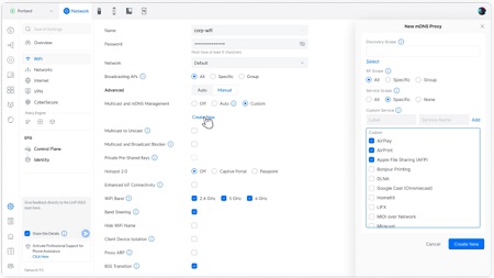 Az új AP-firmware és a Network 9.5 közös működése jelentősen növeli a WiFi multicast hatékonyságát. A frissítés lehetővé teszi, hogy az adminok meghatározott szolgáltatásokat konkrét AP-khoz rendeljenek, így elkerülhető a felesleges adatforgalom és optimalizálható a hálózati kapacitás.