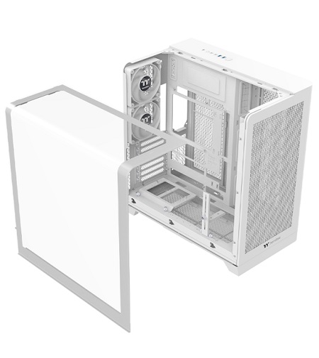 A ház raktárról fekete és fehér színben (gyárilag elérhető még Future Dusk és Butter Caramel verzió is) mutatja, hogy a Thermaltake egyszerre gondol a letisztult, professzionális és a karakteres gamer összeállításokra.
