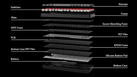 A K2 Max csavarozott, PCB-re rögzített stabilizátorokat használ, amelyek egyenletesebb leütést és kisebb oldalirányú mozgást biztosítanak a nagy billentyűknél, például a szóköznél, a Shift, Enter és Delete gomboknál. A megoldás érezhetően javítja a gépelési érzetet, és kompatibilis harmadik féltől származó screw-in PCB stabilizátorokkal is.