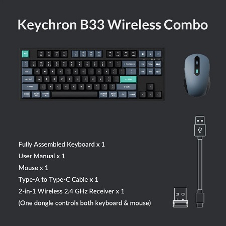 A B33 billentyűzet 80%-os (TKL) kialakítású, tehát nincs külön numerikus pad. A korábban bemutatott B36 + BM25 kombinációhoz képest így kevesebb helyet foglal az asztalon, ami akkor előny, ha nincs szükség numpadra, vagy egyszerűen limitált a rendelkezésre álló hely.