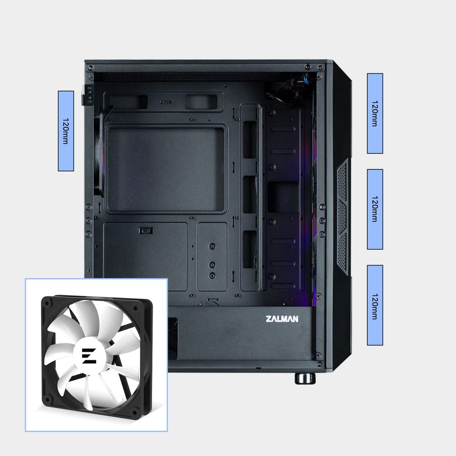 4 előre telepített 120 mm-es ARGB ventilátor (3 elöl, 1 hátul) biztosít gyors hőelvezetést a házból, és akár 8 ventilátor is támogatott